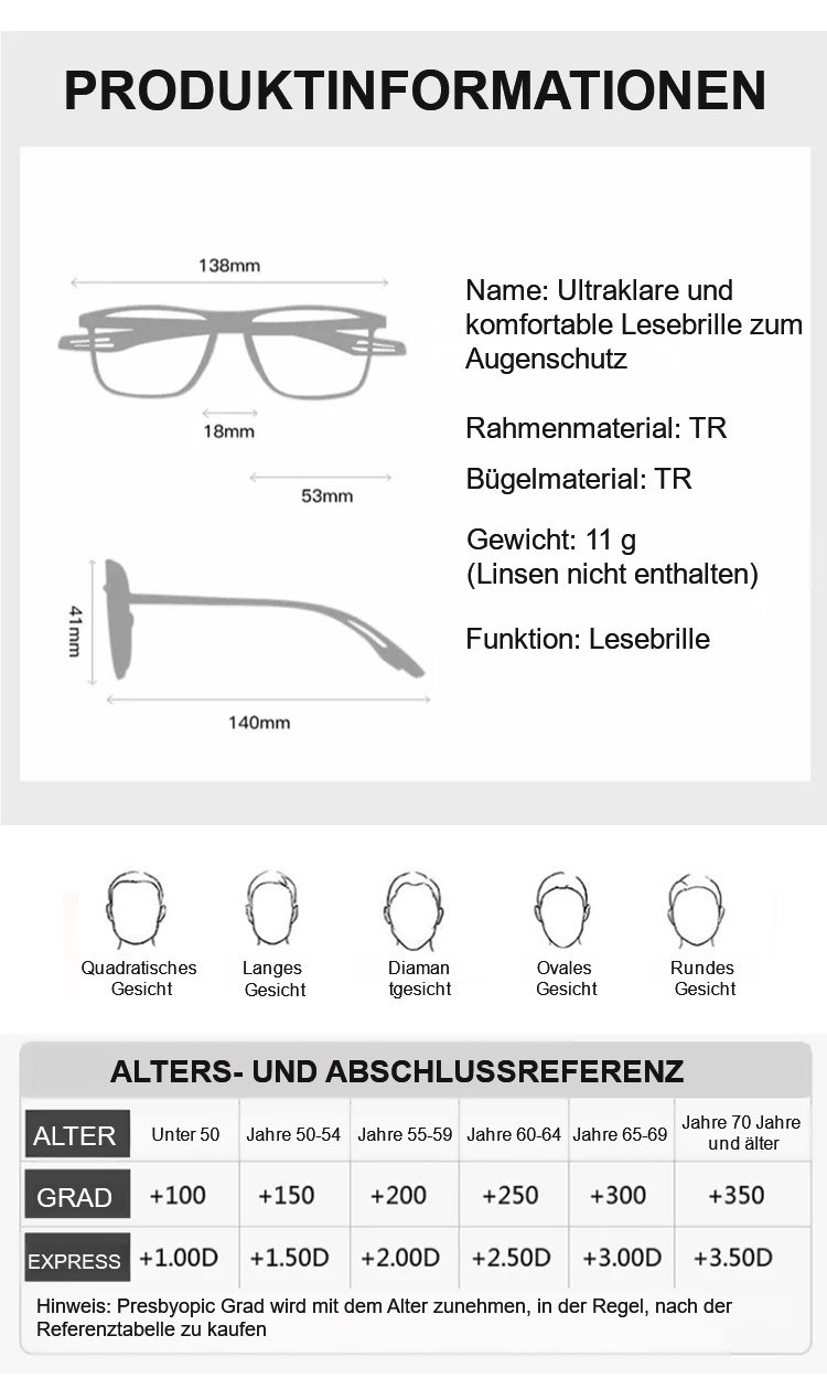 Ultra-klare TR-komfortable Lesebrille für Senioren mit Augenschutz